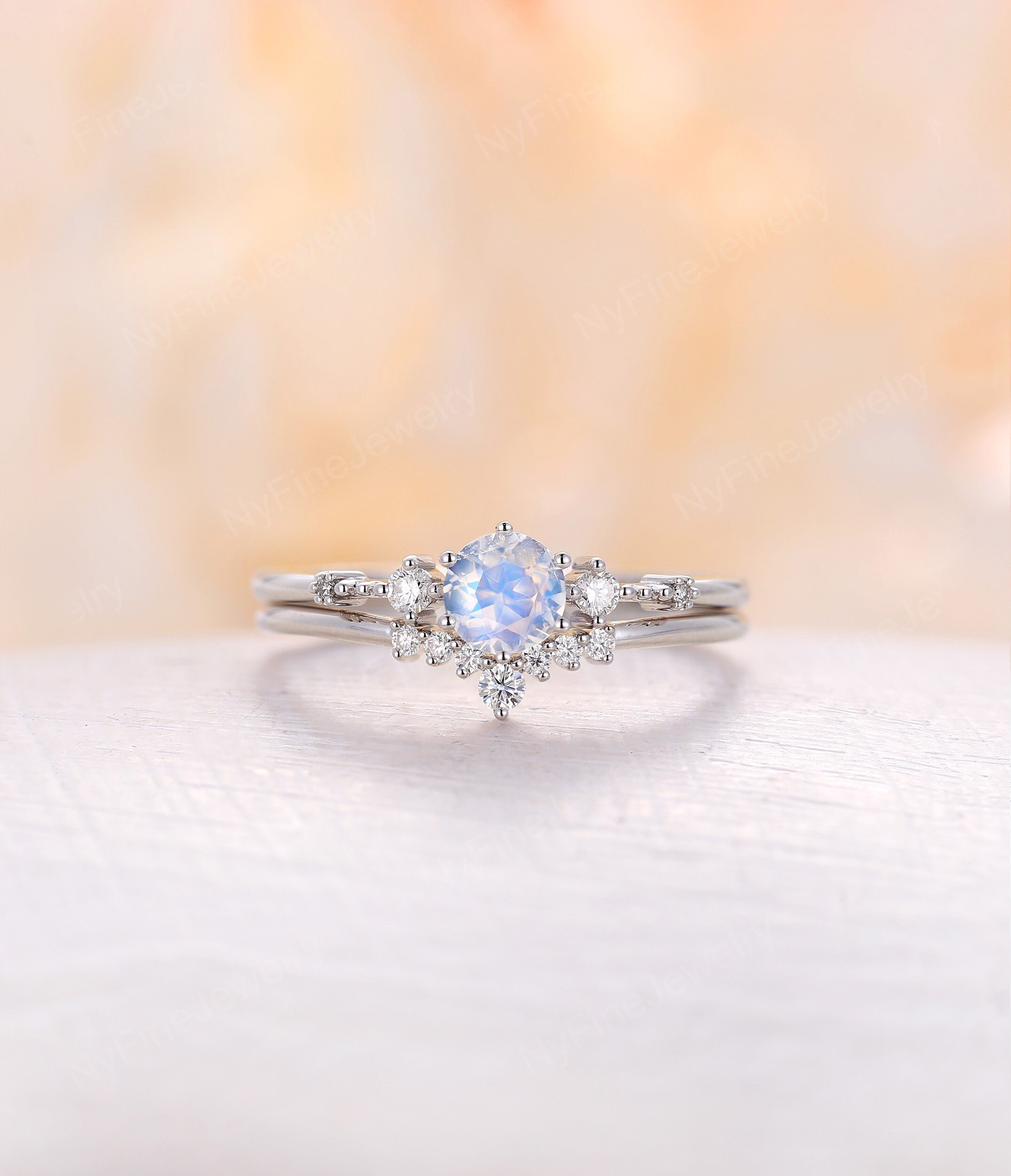 5mm Moonstone Engagement Ring Set White Gold Vintage Etsy India